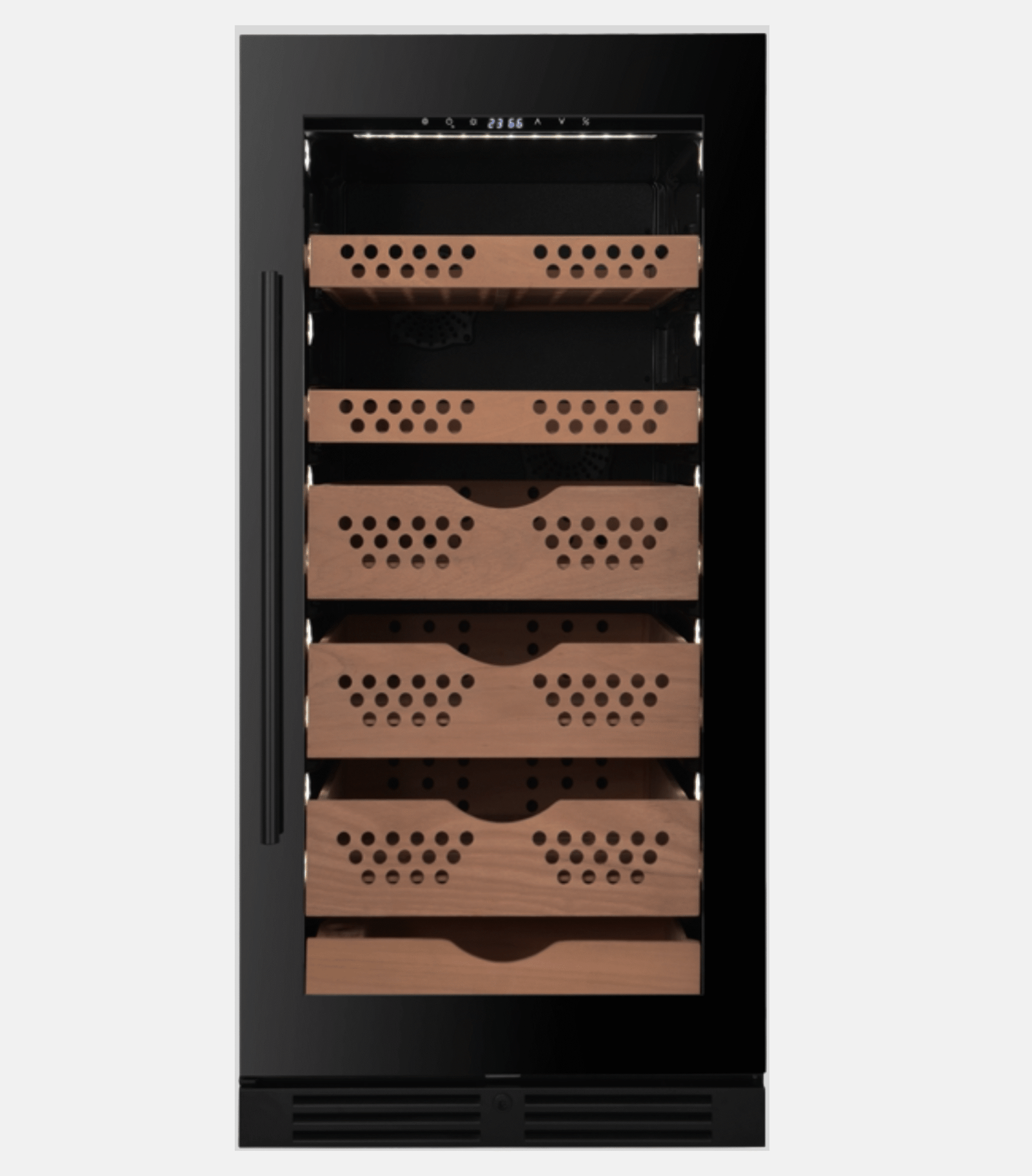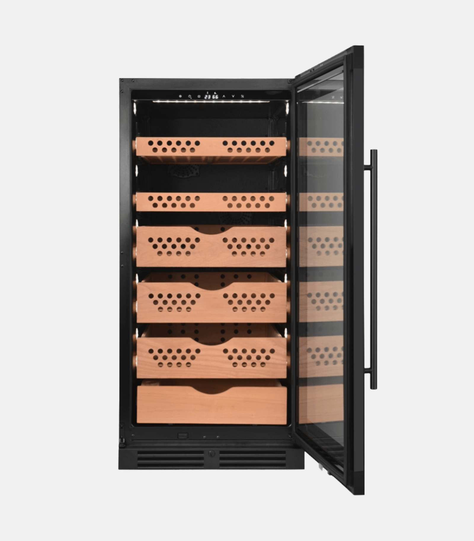 Installation: Built-in / Free-standing Capacity: 260 L Temperature Zone: Single Temperature Range: 12 – 22 °C Humidity Range: 65 – 75 % Door Reversibility: Yes Control: LED touch-pad control Refrigerant: R600a Accessories: 5 pcs sliding cedar humidor shelf 1 pc sliding cedar humidor drawer Product Dimensions (W × D × H): 595 × 710 × 1270 mm Packing Dimensions (W × D × H): 645 × 780 × 1440 mm Net Weight: 71 kg Gross Weight: 82 kg Loading Quantities: 20′ GP: 27 pcs 40′ GP: 54 pcs 40′ HQ: 54 pcs